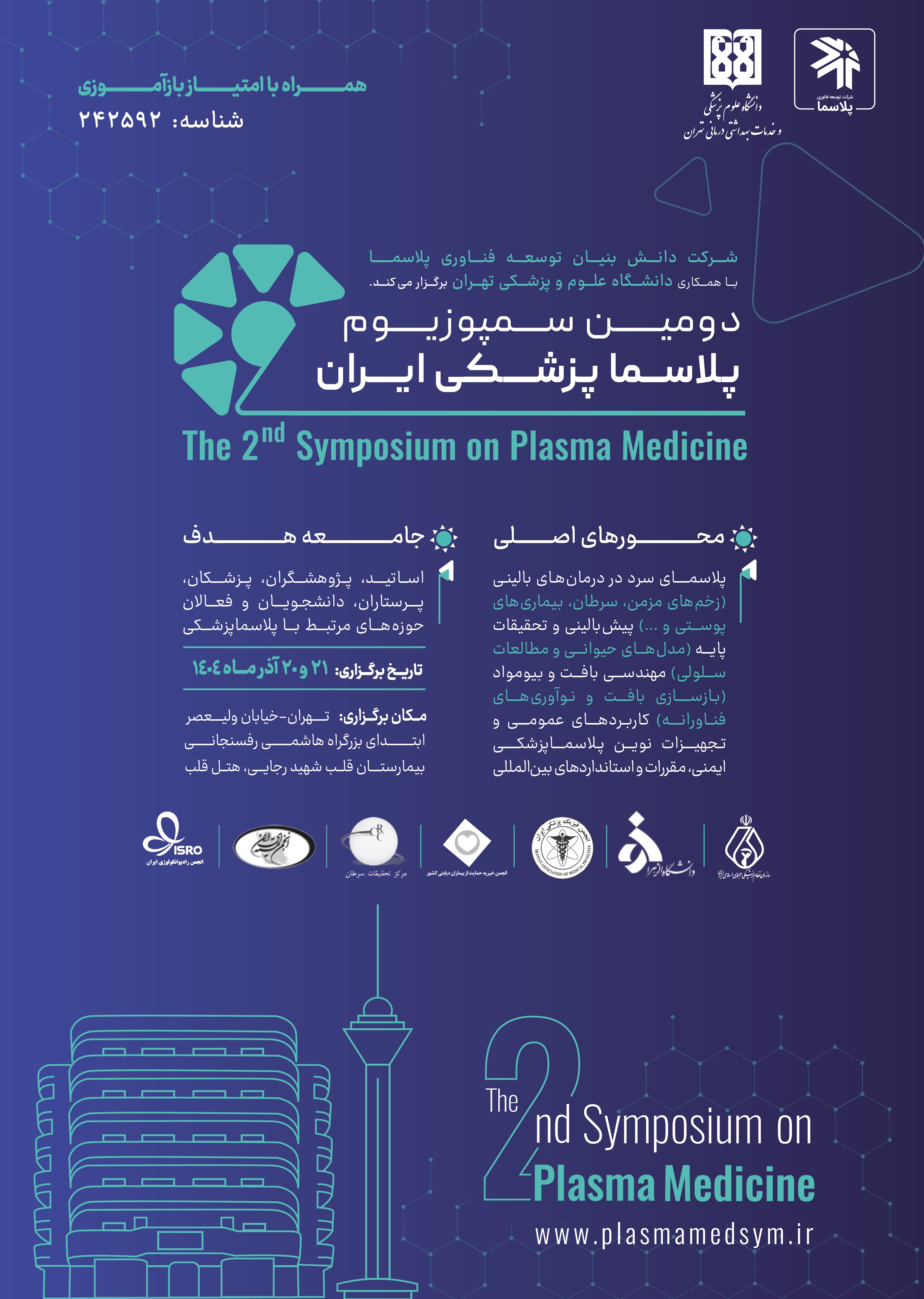 دومین سمپوزیوم پلاسما پزشکی ایران با هدف معرفی تازه ترین دستاوردهای علمی و فناوری پیشرفته عرصه پلاسما پزشکی در تاریخ 20 و 21 آذرماه جاری برگزار می شود. علاقمندان می توانند جهت کسب اطلاعات بیشتر از طریق https://www.plasmamedsym.ir/fa/?time=1761628922 اقدام نمایند.