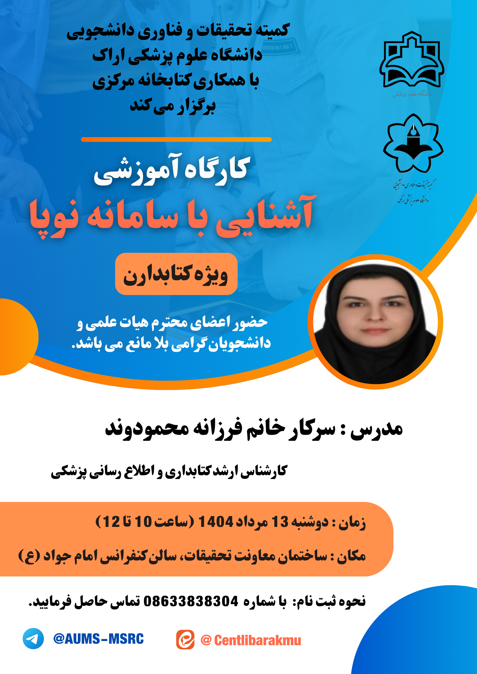 کمتیه تحقیقات و فناوری دانشجویی دانشگاه علوم پزشکی اراک با همکاری کتابخانه مرکزی برگزار می کند: