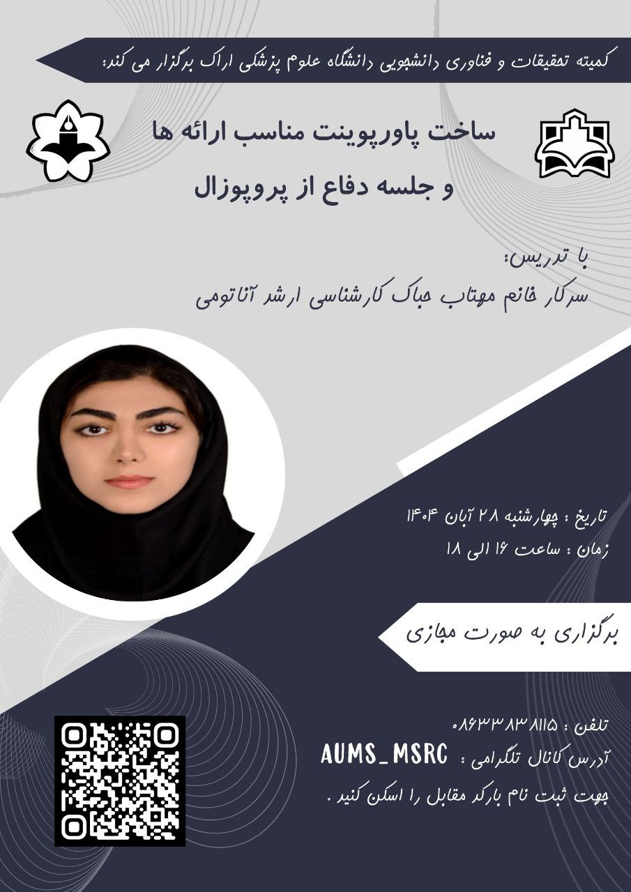 کارگاه آموزشی" ساخت پاورپوینت مناسب ارائه و جلسه دفاع" تعداد بازدید:۲۶ ارسال به دیگران نام شما ایمیل شما ایمیل دریافتکننده ارسال انصراف