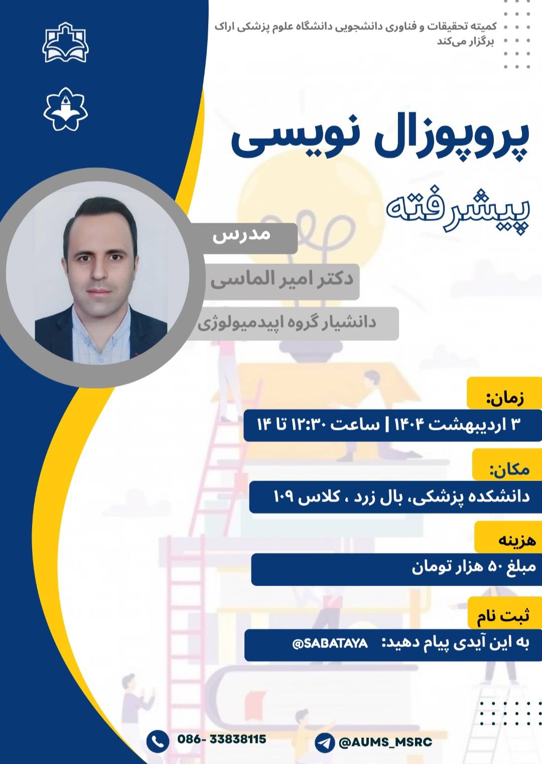 کارگاه جمع بندی پروپوزال نویسی -دکتر امیر الماسی - ۳ اردیبهشت ۱۴۰۴ تعداد بازدید:۲۵ ارسال به دیگران نام شما ایمیل شما ایمیل دریافتکننده ارسال انصراف