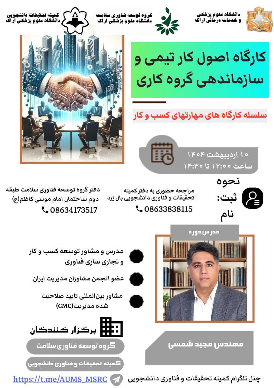 کارگاه اصول کارتیمی و سازماندهی گروهی-مهندس مجید شمسی-۱۰ اردیبهشت ۱۴۰۴ تعداد بازدید:۱۶ ارسال به دیگران نام شما ایمیل شما ایمیل دریافتکننده ارسال انصراف