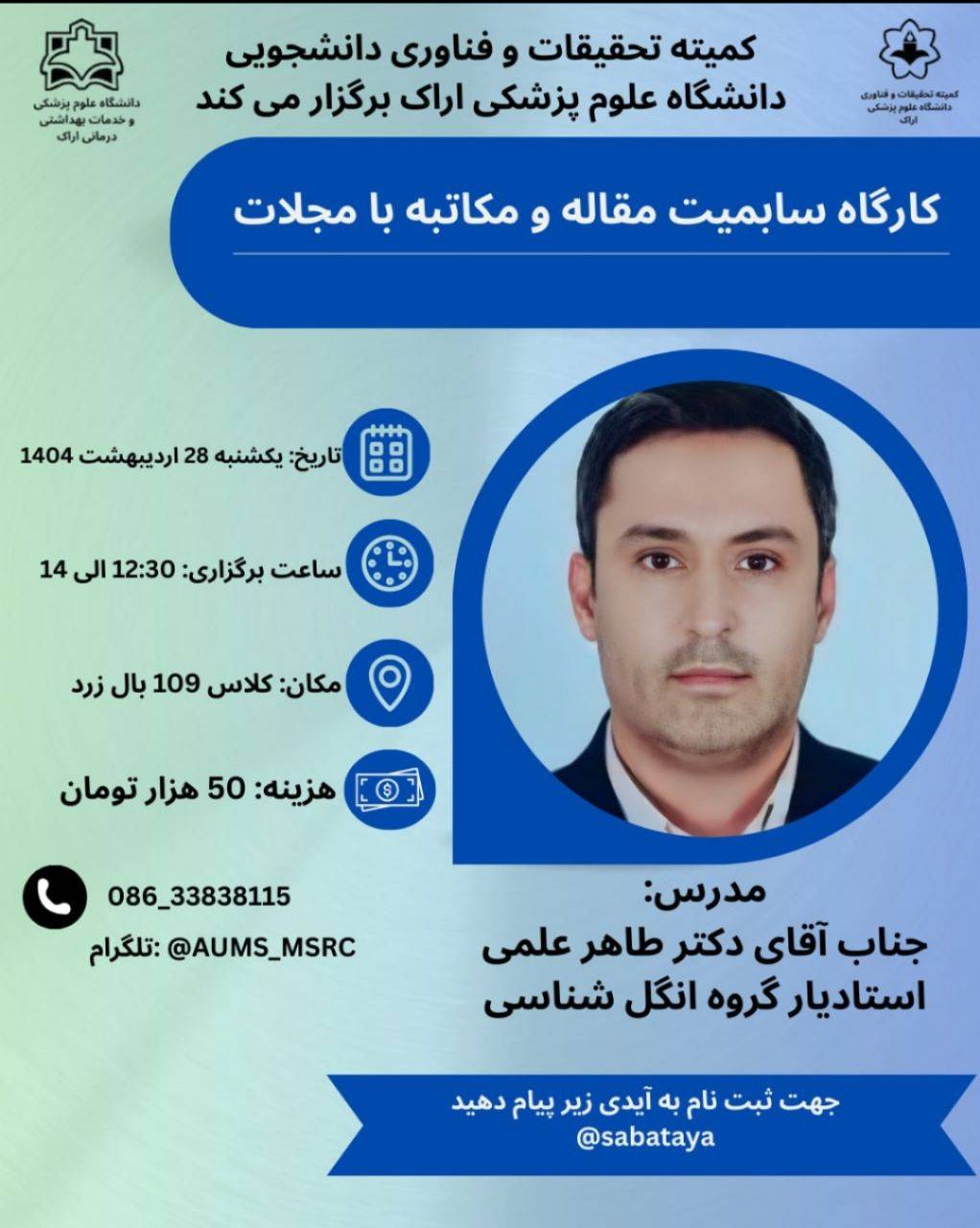 کارگاه سابمیت مقالات و مکاتبه با مجلات-دکتر طاهر علمی-۲۸ اردیبهشت ۱۴۰۴ تعداد بازدید:۱۰ ارسال به دیگران نام شما ایمیل شما ایمیل دریافتکننده ارسال انصراف