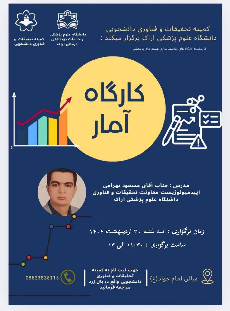 کارگاه آمار -آقای مسعود بهرامی-۳۰ اردیبهشت ۱۴۰۴ تعداد بازدید:۱۳ ارسال به دیگران نام شما ایمیل شما ایمیل دریافتکننده ارسال انصراف