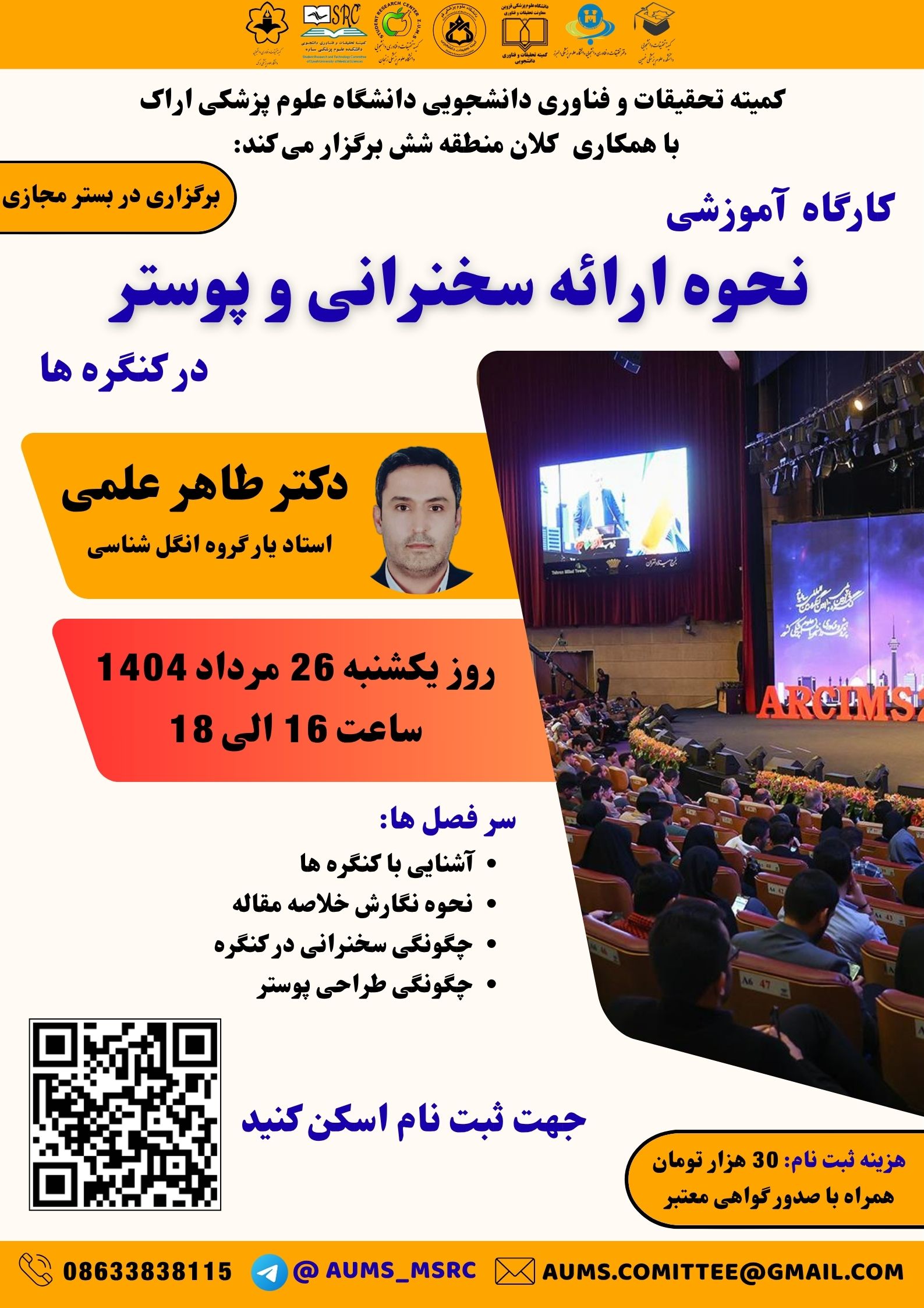 کارگاه نحوه ارائه سخنرانی و پوستر در کنگره ها- دکتر طاهر علمی-۲۶ مرداد ۱۴۰۴ تعداد بازدید:۱۰ ارسال به دیگران نام شما ایمیل شما ایمیل دریافتکننده ارسال انصراف