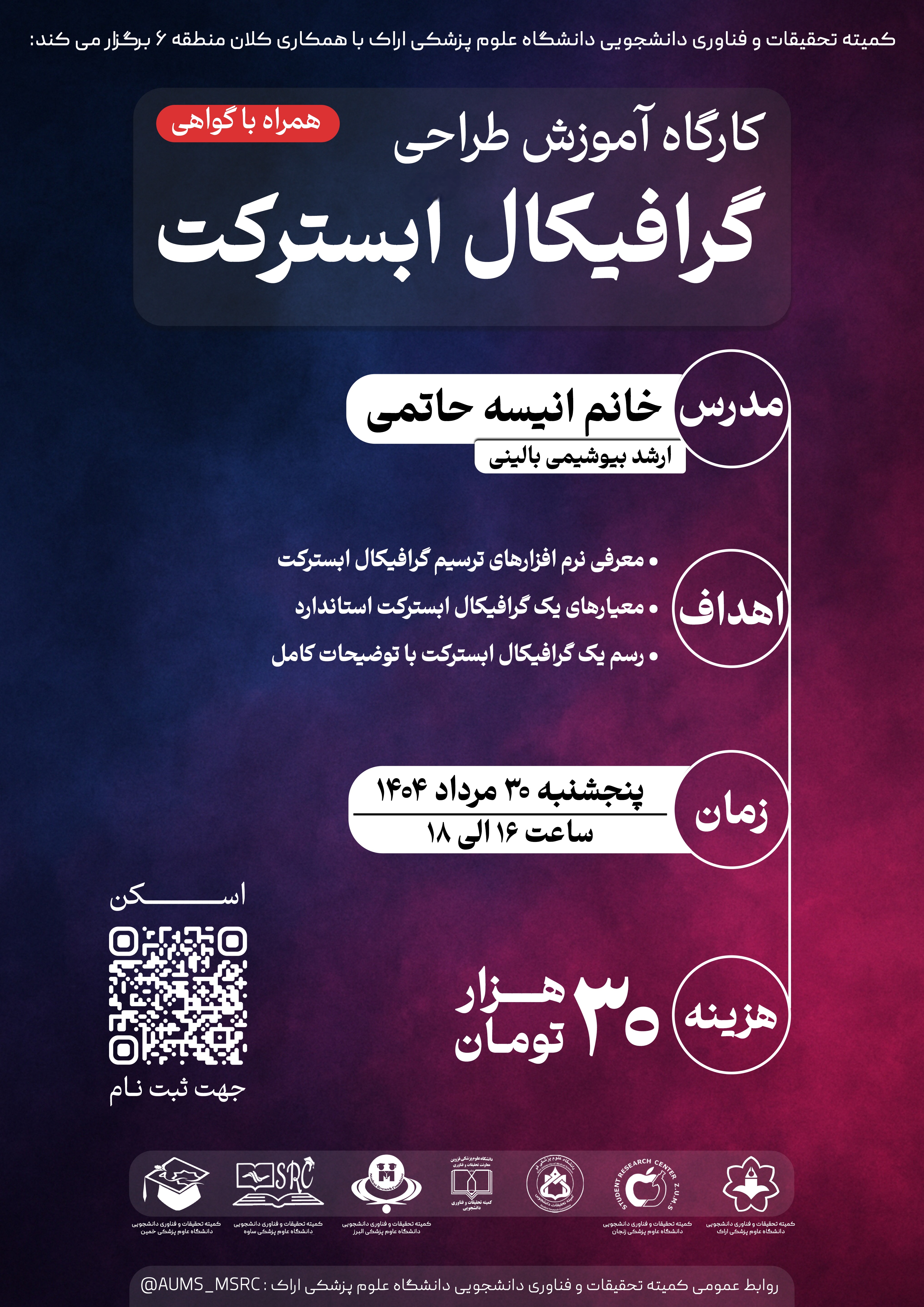 کارگاه آموزش طراحی گرافیکال ابسترکت -خانم انیسه حاتمی-۳۰ مرداد ۱۴۰۴ تعداد بازدید:۱۱ ارسال به دیگران نام شما ایمیل شما ایمیل دریافتکننده ارسال انصراف