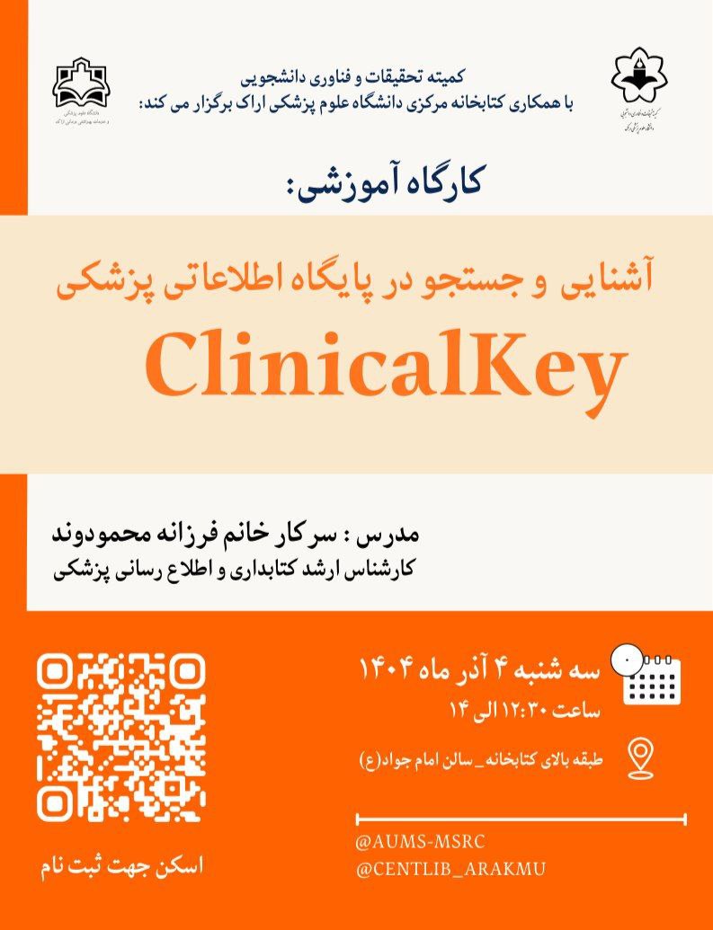 کارگاه آشنایی با جستجو در پایگاه پزشکی ClinicalKey -خانم فرزانه محمودوند-۴ آذر ۱۴۰۴ تعداد بازدید:۱۳ ارسال به دیگران نام شما ایمیل شما ایمیل دریافتکننده ارسال انصراف