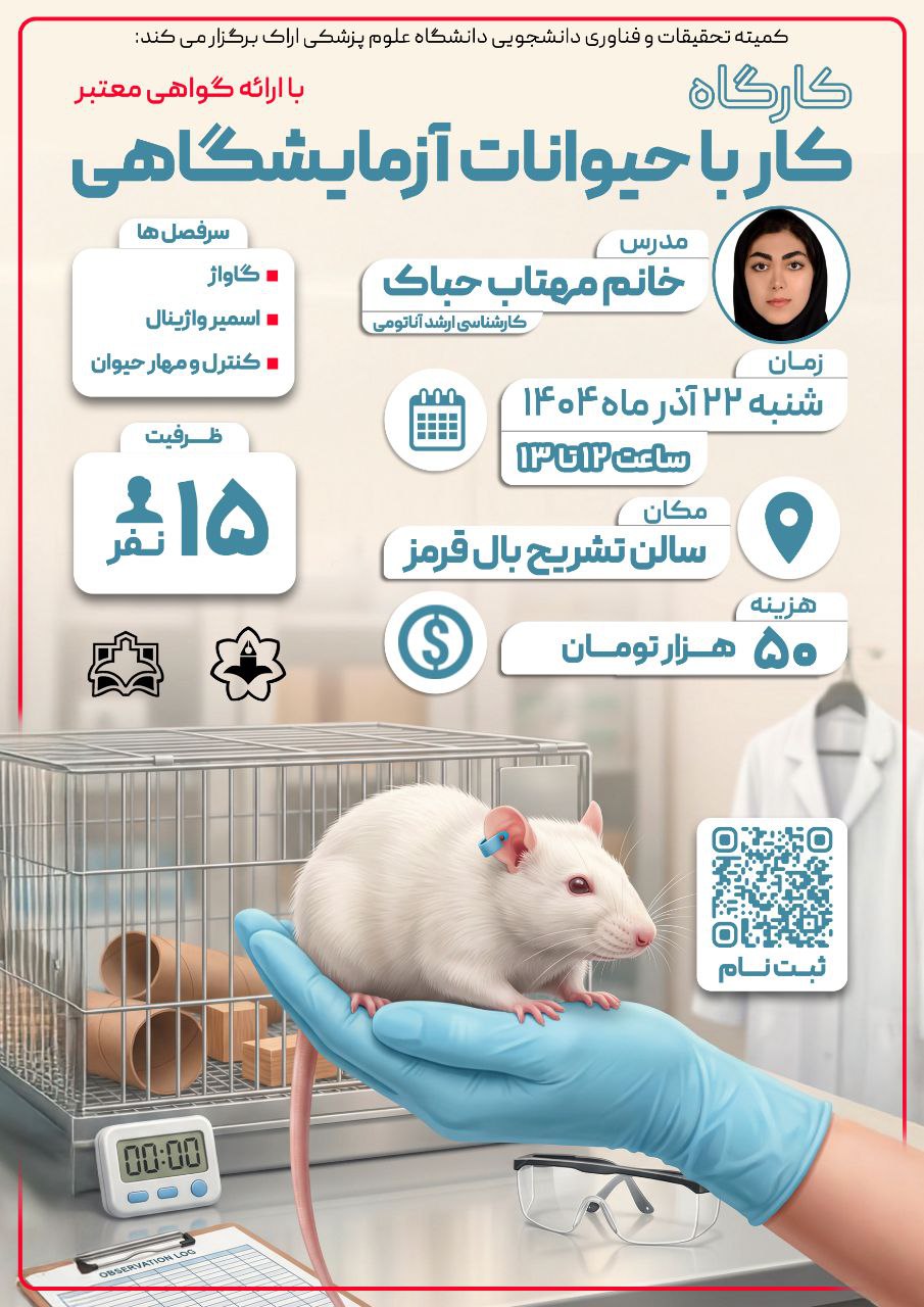 کارگاه کار با حیوانات آزمایشگاهی- مدرس: خانم مهتاب حباک - ۲۲ آذر ۱۴۰۴ تعداد بازدید:۹ ارسال به دیگران نام شما ایمیل شما ایمیل دریافتکننده ارسال انصراف