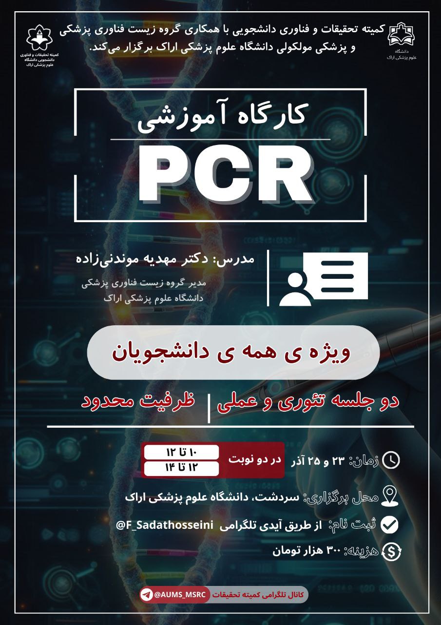 سلسله کارگاه PCR -دکتر مهدیه موندنی زاده- آذر ۱۴۰۴ تعداد بازدید:۱۳ ارسال به دیگران نام شما ایمیل شما ایمیل دریافتکننده ارسال انصراف